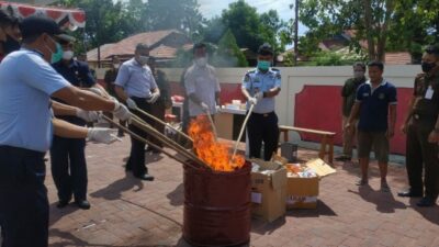 “Pemusnahan BB itu terdiri dari narkotika, obat-obatan ilegal, senjata tajam, judi, dan tindak pidana lainya,” ujar Mas’ud.