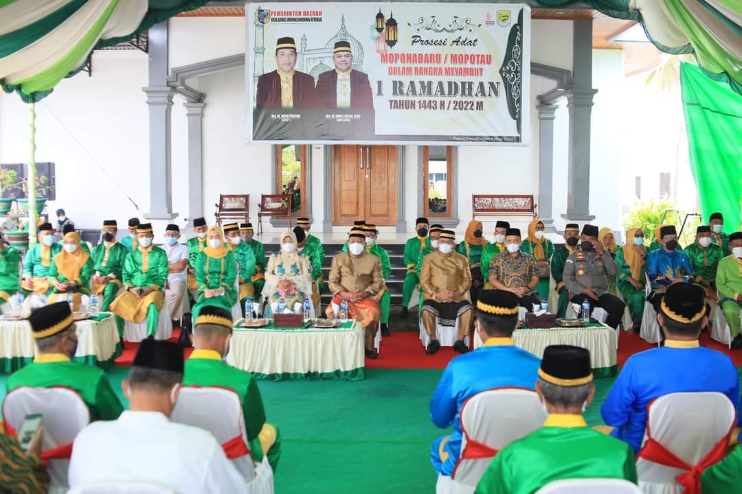 Demikian disampaikan Bupati Depri Pontoh saat menerima prosesi Adat Mopohabaru/Mopotau oleh Aliansi Lembaga Adat Bolmut dalam rangka menyambut 1 Ramadan 1443 H di kediamannya, di Desa Bolangitang I, Jumat, 25 Maret 2022.