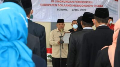 Hal ini disampaikannya saat melantik dan mengambil sumpah jabatan 34 pejabat struktural administrator, pengawas dan fungsional pada lingkungan Pemerintah Kabupaten Bolmut di Gedung Wanita kawasan Pantai Batu Pinagut, Kecamatan Kaidipang, Kamis, 14 April 2022.
