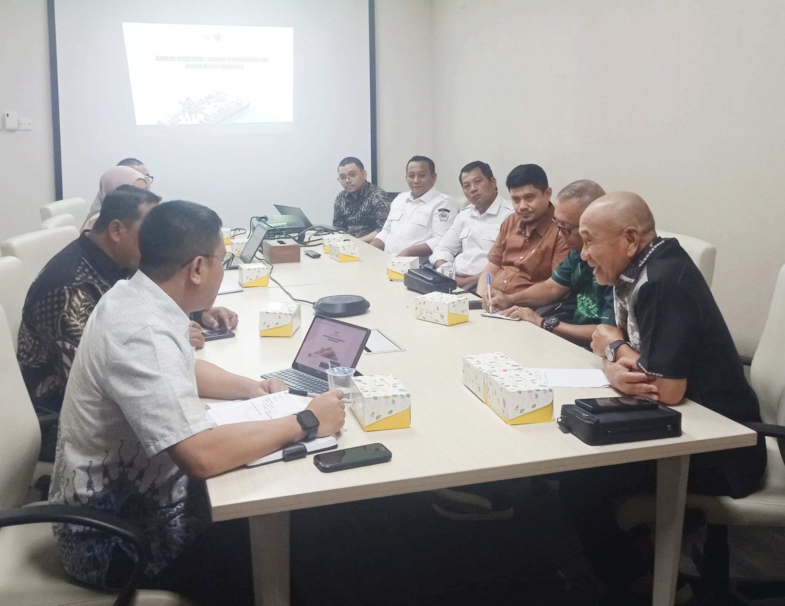 Dalam pertemuan bersama Kepala Subdirektorat Perencanaan Direktorat Jenderal Perhubungan Laut, rombongan Pemda Pohuwato menyampaikan sejumlah persoalan strategis terkait Pelabuhan Bumbulan.
