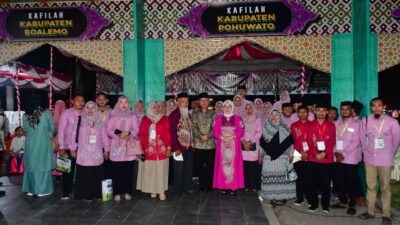 Abstrak.id – Usai menghadiri pembukaan Musabaqah Tilawatil Quran (MTQ) XI Tingkat Provinsi Gorontalo, di Arena Utama Taman Menara Limboto, Kabupaten Gorontalo, Bupati Pohuwato, Saipul A. Mbuinga bersama Ketua Tim Penggerak PKK Pohuwato, Selvi Mbuinga Monoarfa menemui kafilah utusan Kabupaten Pohuwato, Ahad (05/05/2024).