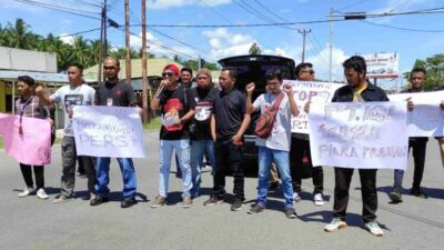 Mereka juga menyesali sikap pelaku yang sampai detik ini tak beritikad baik kepada ID (korban). Sehingga dalam aksi tersebut para Jurnalis mendesak Kapolres Pohuwato, AKBP Joko Sulistiono untuk memproses hukum dan mengadili pelaku