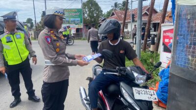 Kasat Lantas Polres Pohuwato, Iptu Novika Veronika, S.Trk menjelaskan bahwa pembagian stiker ini bertujuan untuk mengedukasi pengendara tentang pentingnya mematuhi aturan lalu lintas demi keselamatan bersama.