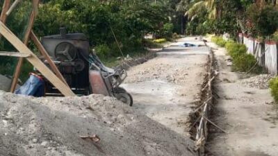 Abstrak.id – Proyek perbaikan jalan di Desa Taopa Utara, Kecamatan Taopa, Kabupaten Parigi Moutong yang hampir selesai dikerjakan, kini mengalami kerusakan parah meskipun belum ada kendaraan roda empat yang melaluinya.