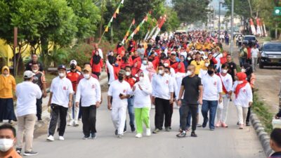 Adapun aksi jalan sehat tersebut dimulai dari Halaman Masjid Agung Baiturahim Pohuwato, kemudian menuju Halaman Kantor Bupati Pohuwato untuk melakukan senam zumba, Jumat (11/2/2022).