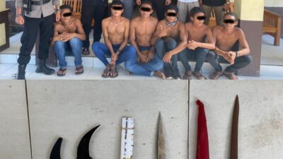 Saat melaksanakan kegiatan razia, petugas pun mendapati enam orang yang sedang mengonsumsi miras. Dari mereka, ditemukan pula tiga buah sajam jenis badik dan kerambit.